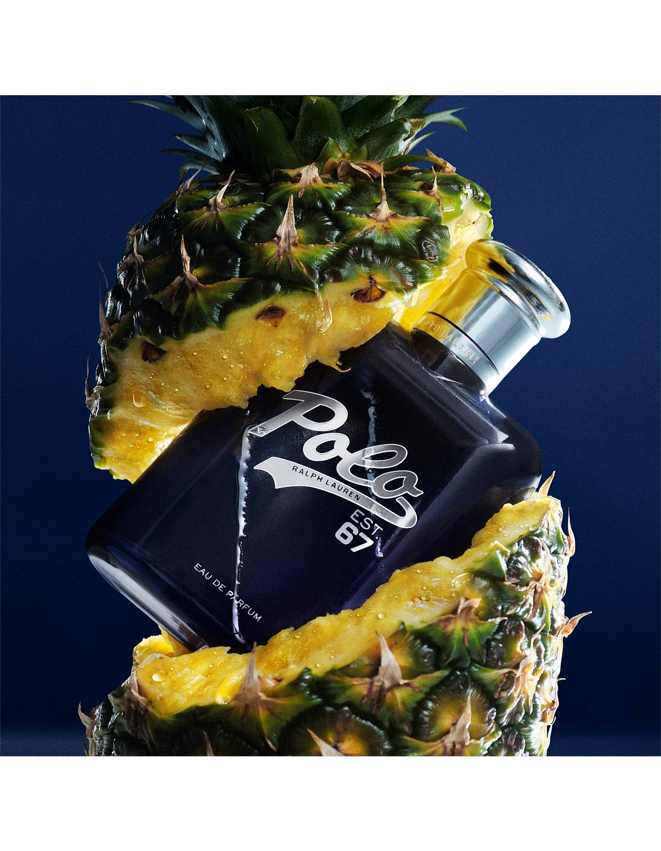 Forged from ambition, Ralph Lauren Polo 67 Eau de Parfum is an explosive fusion of invigorating freshness and smoldering sensuality. The scent bursts open with pineapple, with its juicy sweetness instantly captivating the senses. The bright note surrenders to a heart of warm cedarwood. This rugged, masculine core is ignited by a rich base of luxurious benzoin resin that lingers on the skin, creating an intoxicating impression of desire. Polo 67 Eau de Parfum is more than a scent, it¿s a statement: Design your dreams.
